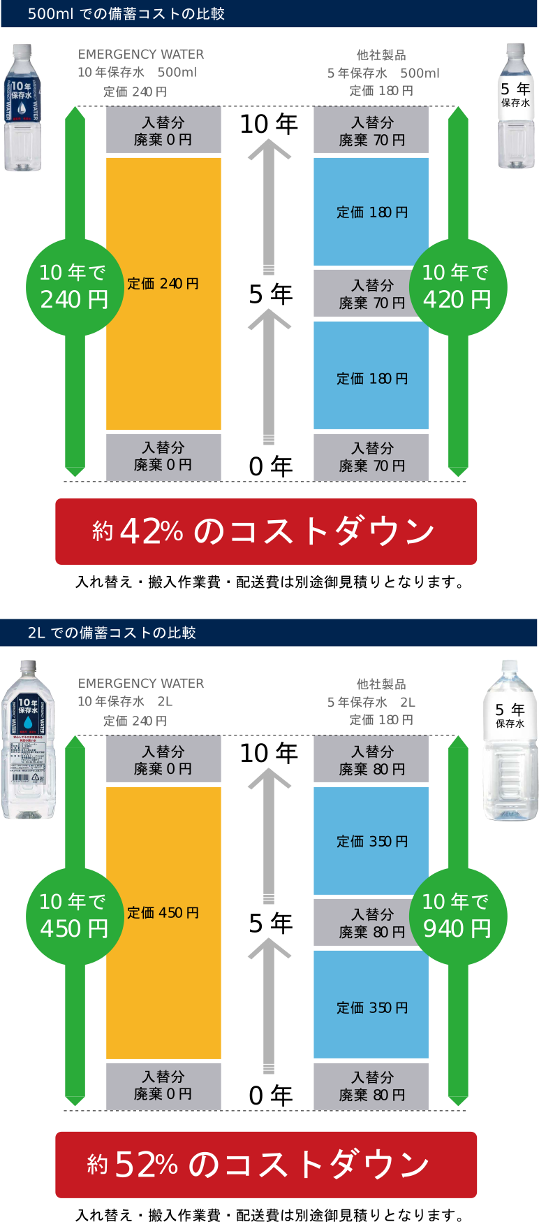 期限切れの備蓄水を取り替える際にもコストはかかります。