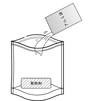 - 少量の水を添加するだけで、食品をあつあつにします。